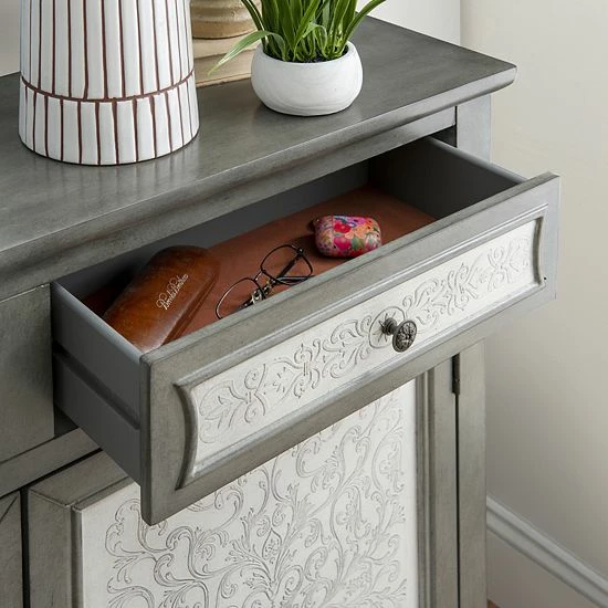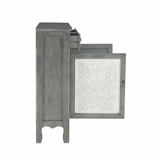 Catch the eye of your guests with this Linon Antique Inspired Storage Cabinet.