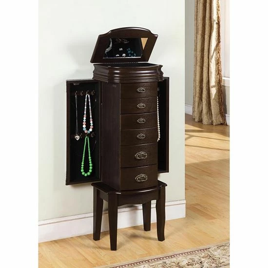 Store all of your beloved treasures in this jewelry armoire, featuring spacious storage.