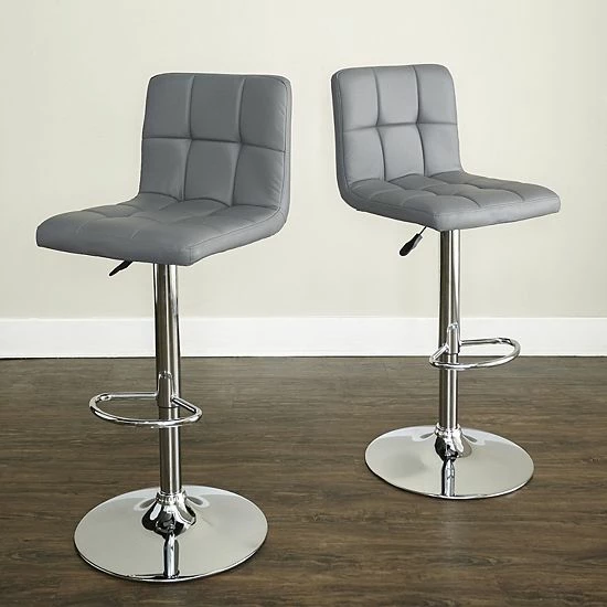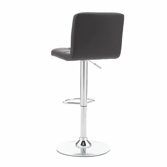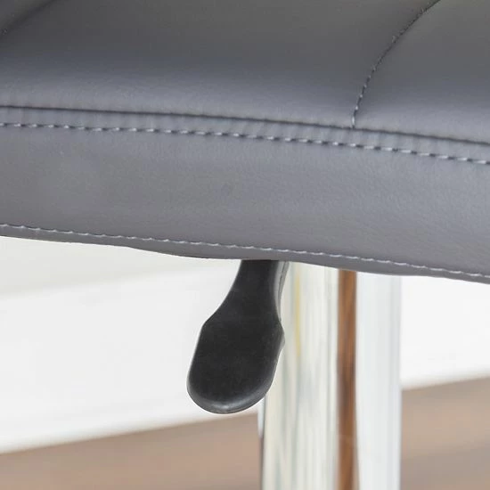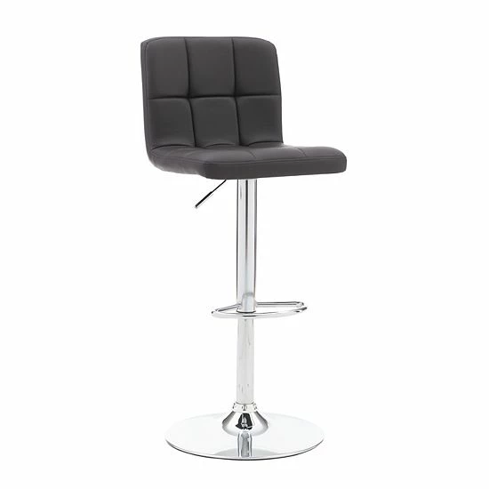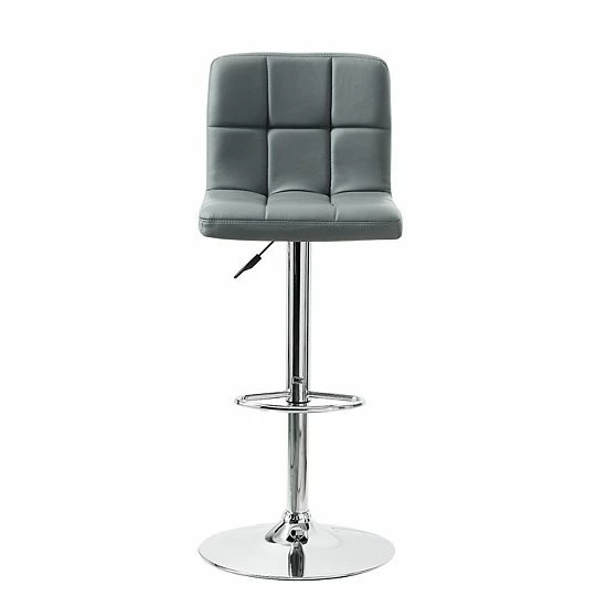 A stylish, faux leather quilted seat lends itself to the contemporary styling of this grey swivel bar stool.