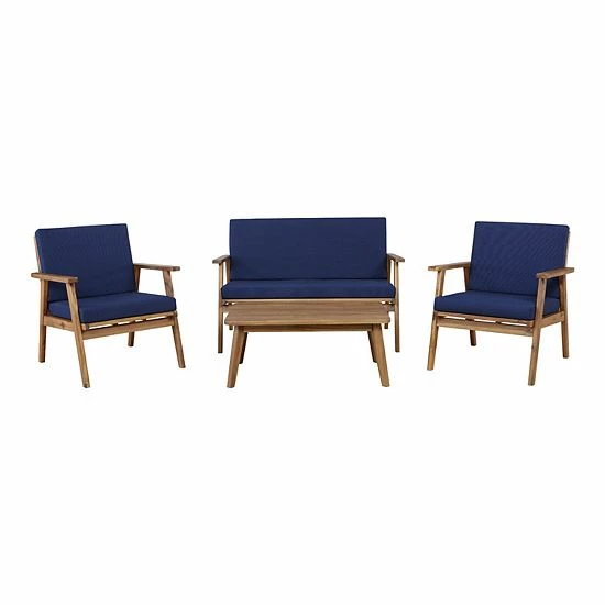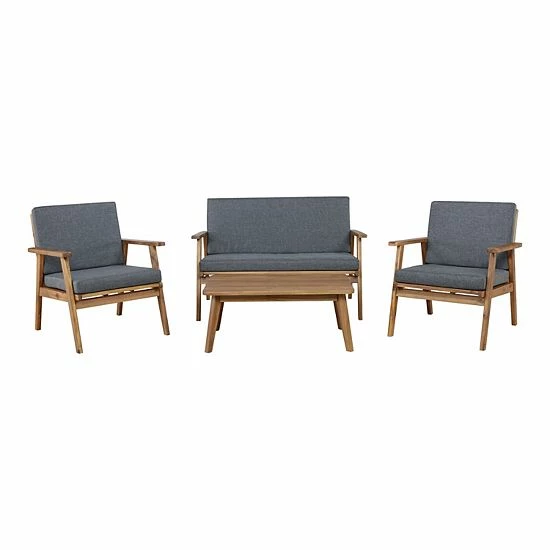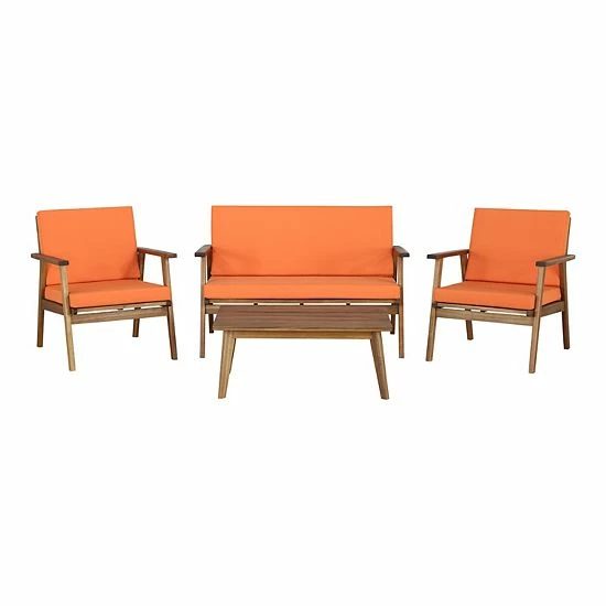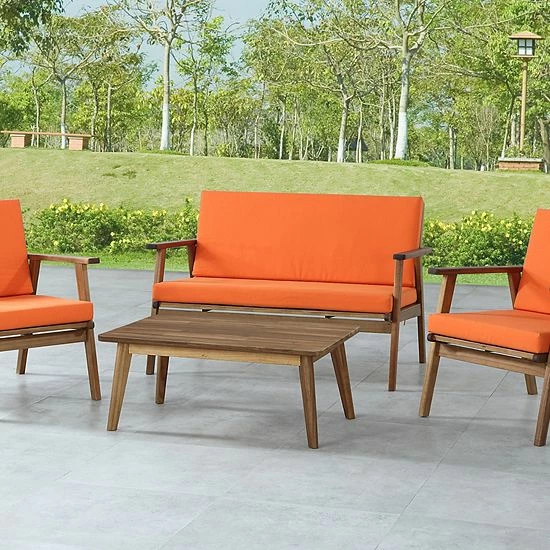 This conversational patio set will be comfortable, inviting, and durable with its cozy cushions and bright color.