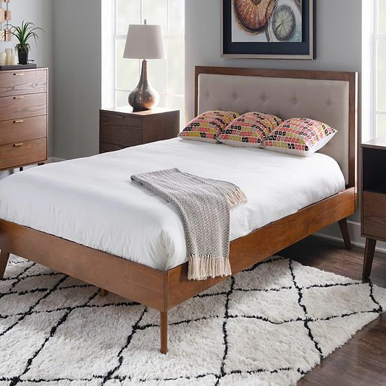 Elevate your master bedroom with this stylish Linon Reid Mid-Century Modern Platform Queen Bed.