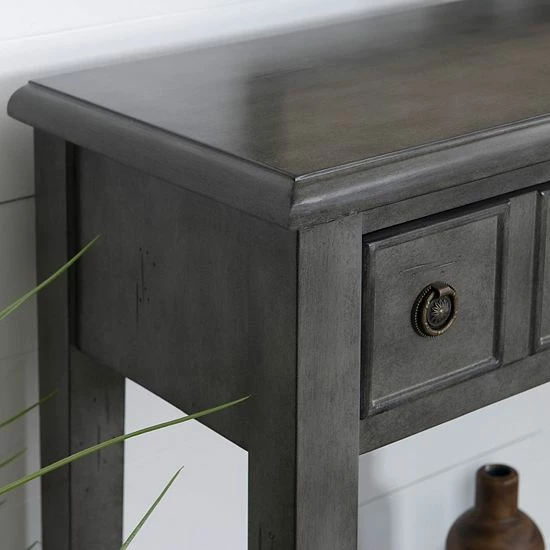 - Two storage drawers with antique bronze pulls