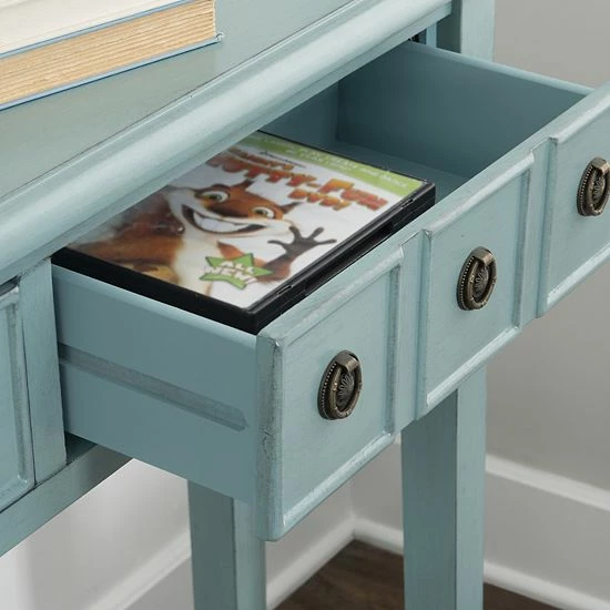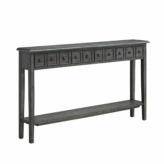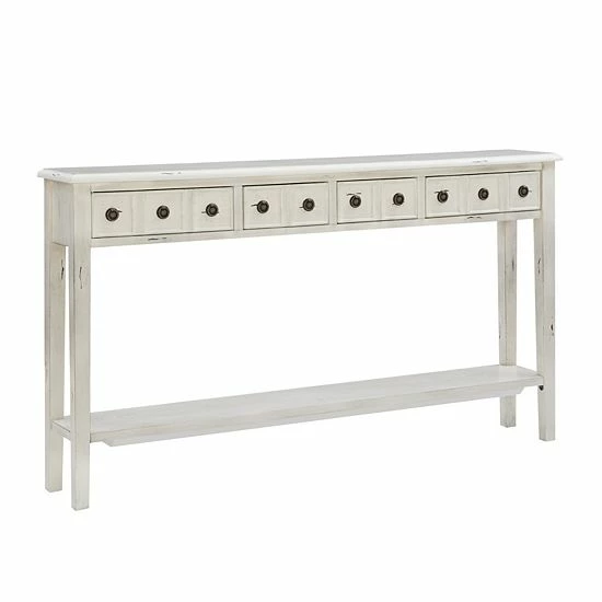 With a distressed design, this Linon Sadie Long Console Table adds charm to your home styling.