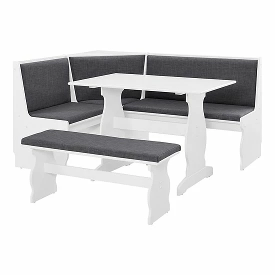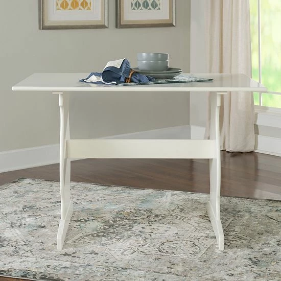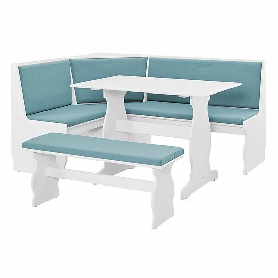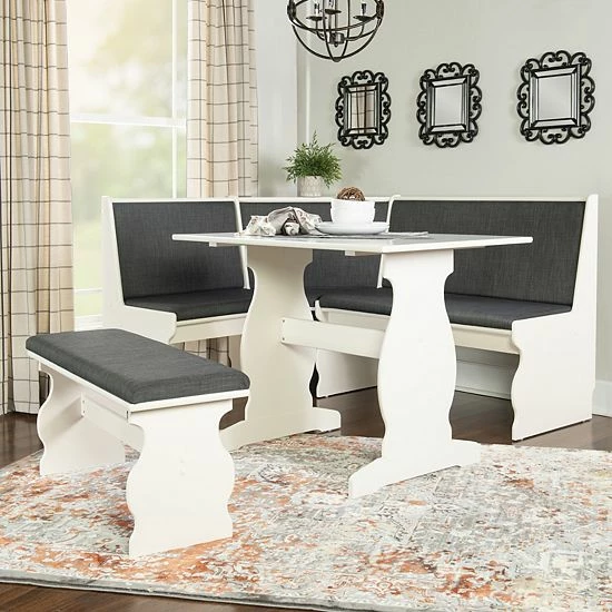 Bring casual coastal charm to your kitchen with this Linon nook dining table 3-piece set.