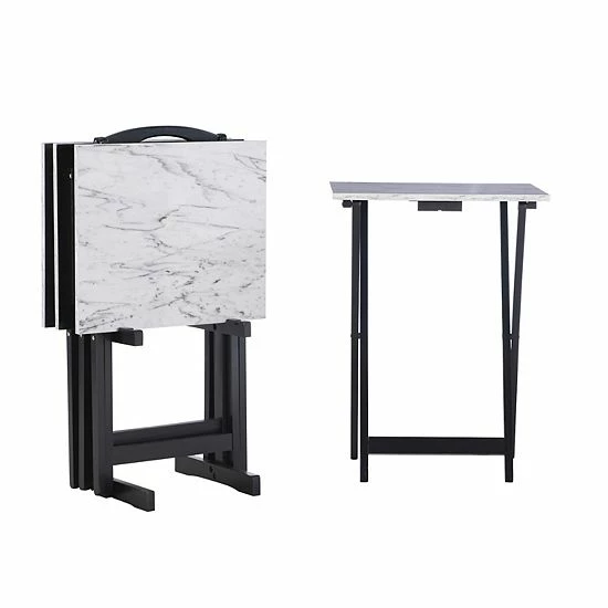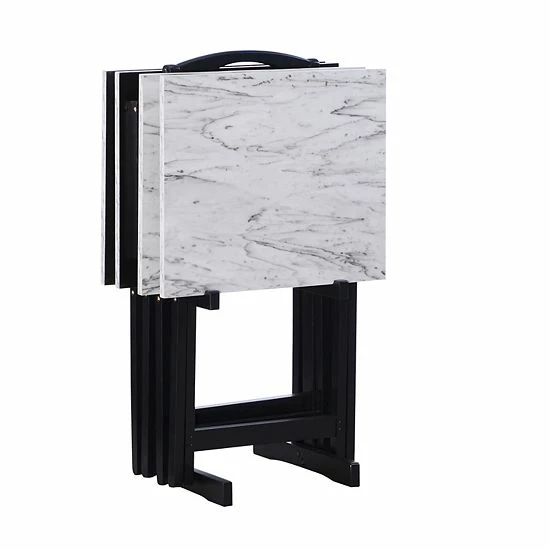 Take TV trays to the next level with this classy Linon white faux marble TV tray set.