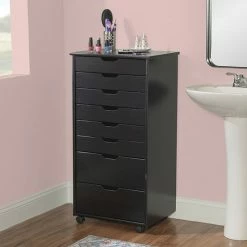 Linon Cary 8-Drawer Rolling Storage Cart Black